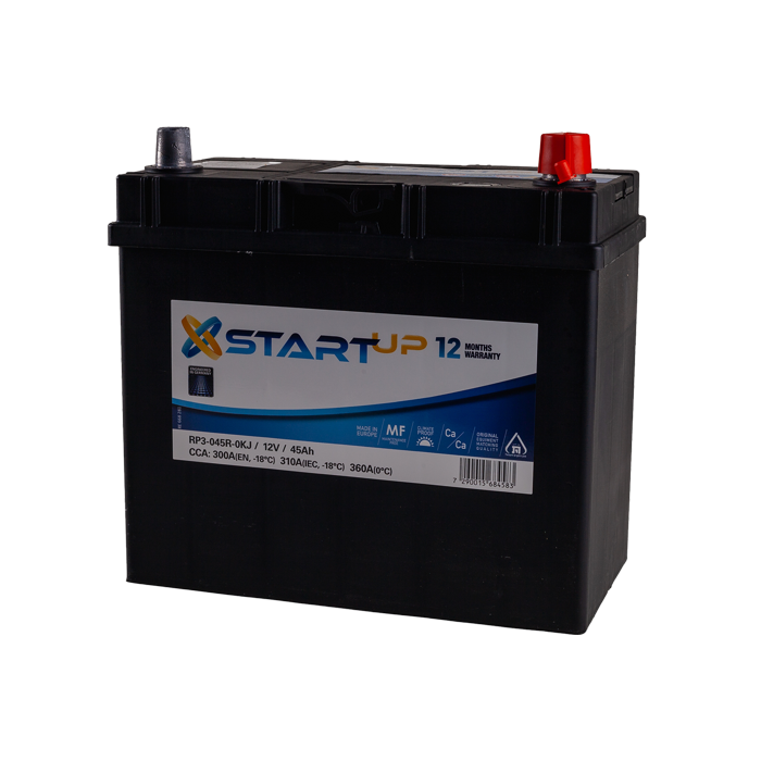 מצבר רכב סטארט-אפ 45 אמפר ימין עבה יפני ללא קנט